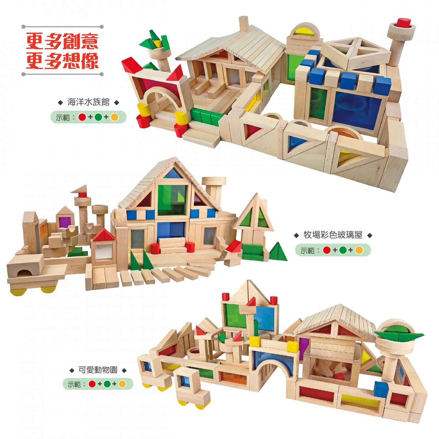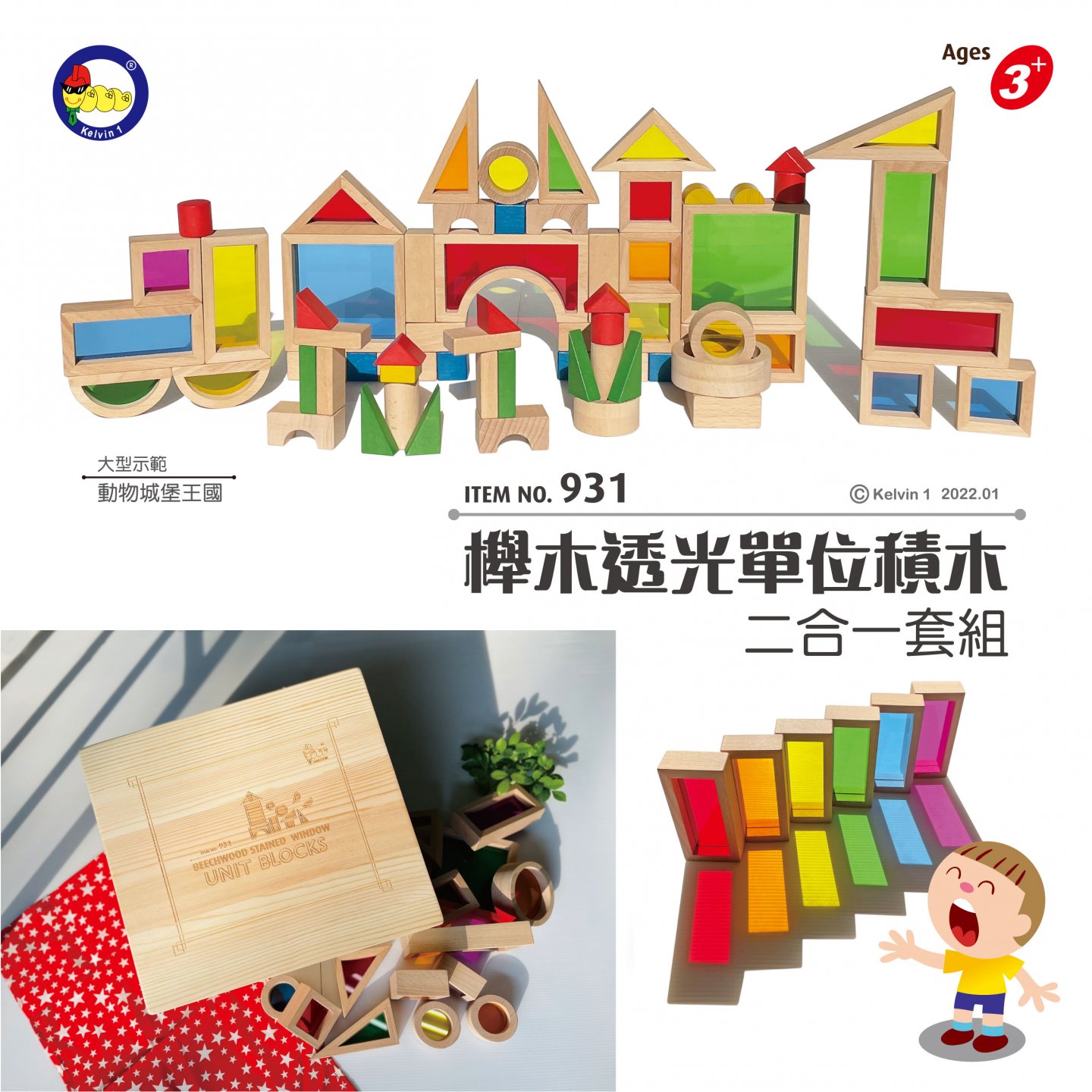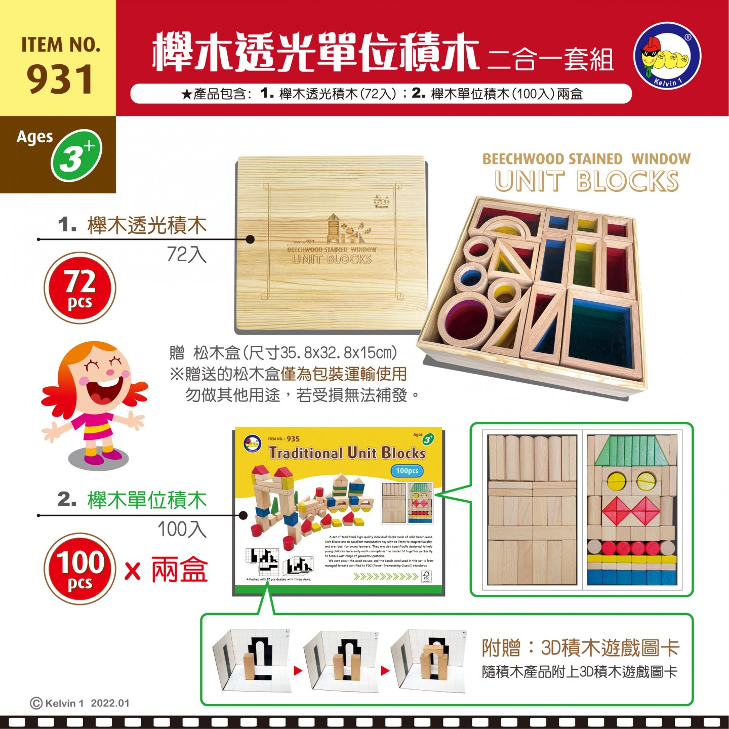 #931 櫸木透光積木(72pcs/盒)+ 櫸木單位積木(100pcsx2/盒) 二合一套組"
