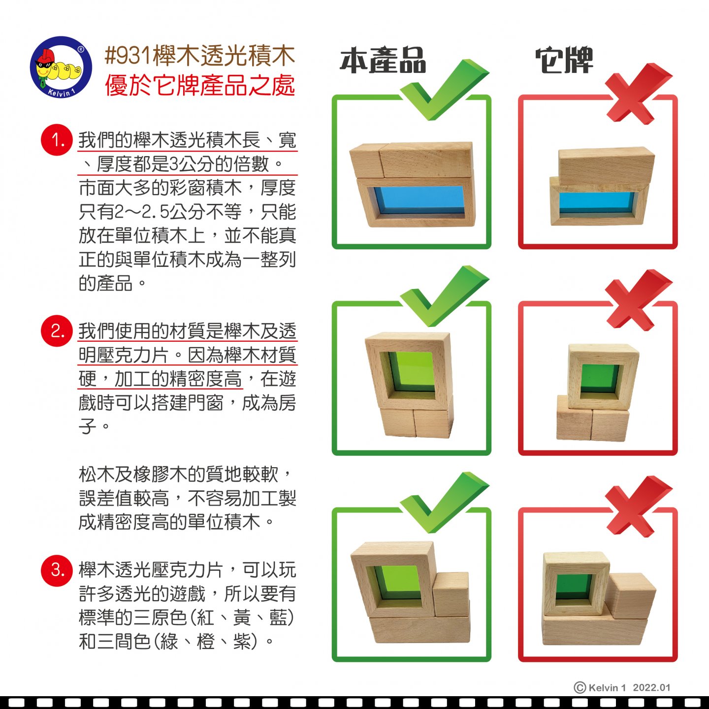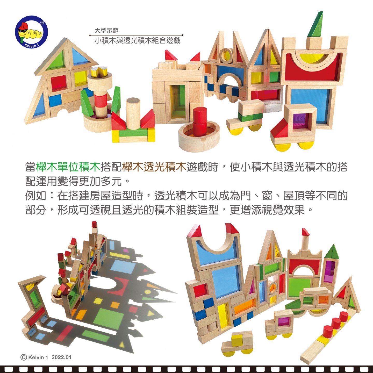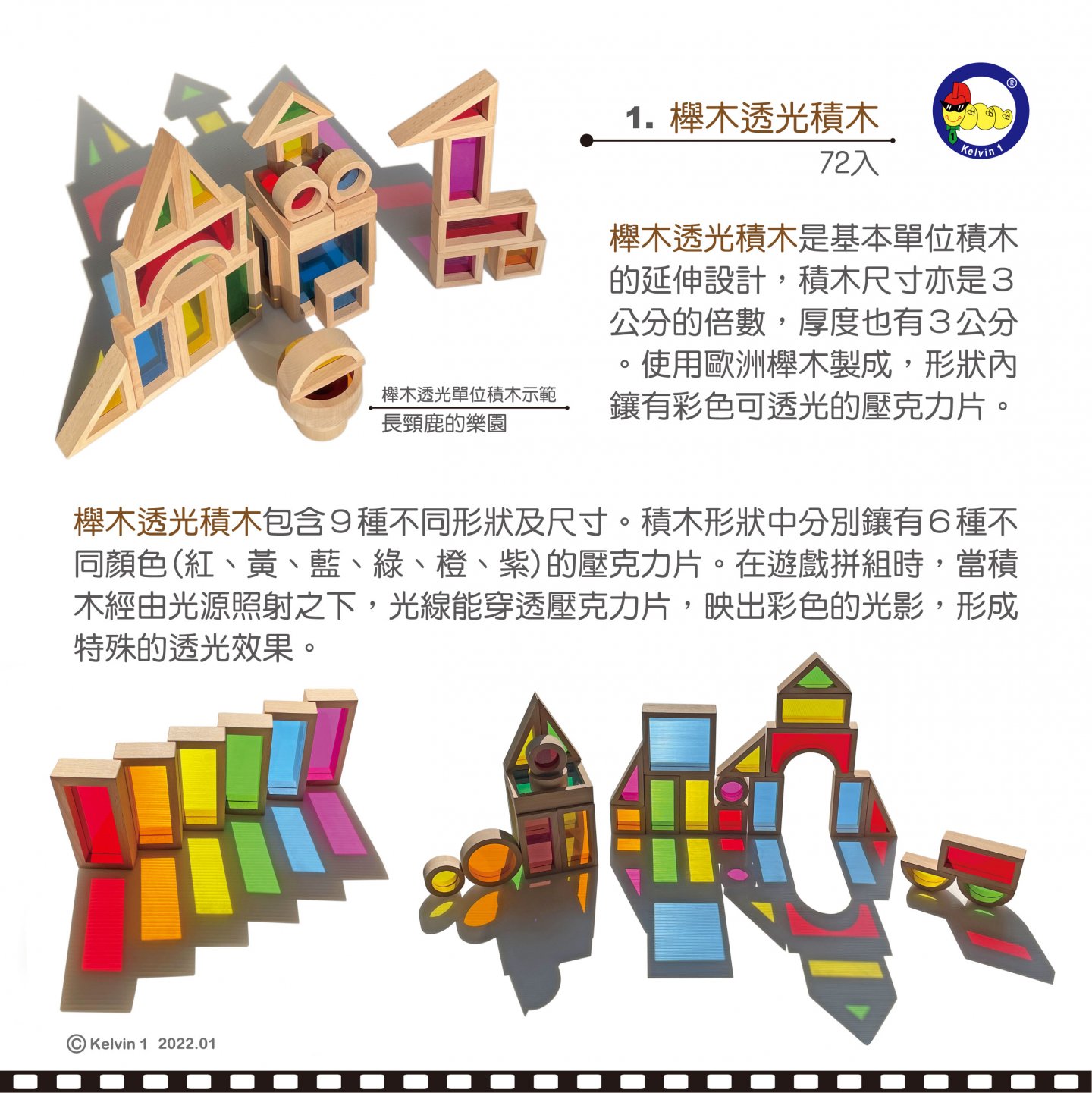#931 櫸木透光積木(72pcs/盒)+ 櫸木單位積木(100pcsx2/盒) 二合一套組"