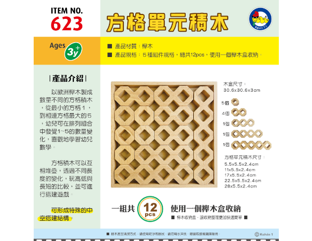 #623 方格單元積木(12pcs+1個櫸木盒)