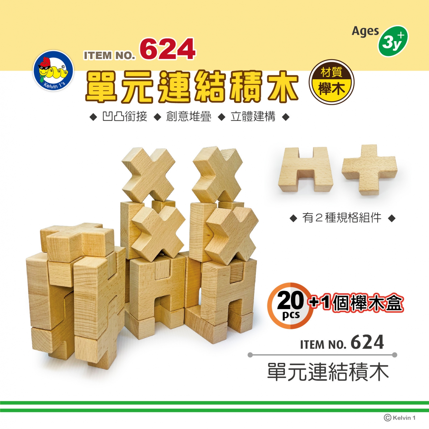 #624 單元連結積木 (20pcs+1個櫸木盒)