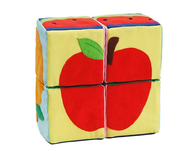 - 這組有趣的旋轉海綿方塊是以特殊方式將4粒海綿方塊縫在一起,讓小孩在扭扭轉轉之間,可以拼組成正方形的水果圖案,有蘋果、橘子、草莓和鳳梨; 另可組成長方形的水果圖案,有西瓜和香蕉。