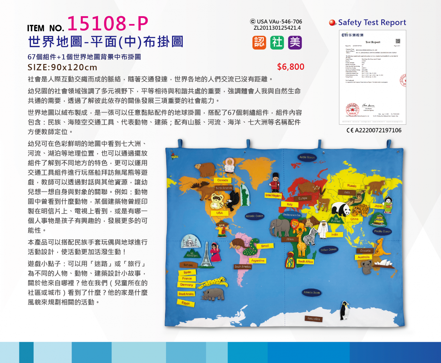 幼兒可在色彩鮮明的地圖中看到七大洲、河流、湖泊等地理位置,也可以通過擺放組件了解到不同地方的特色。