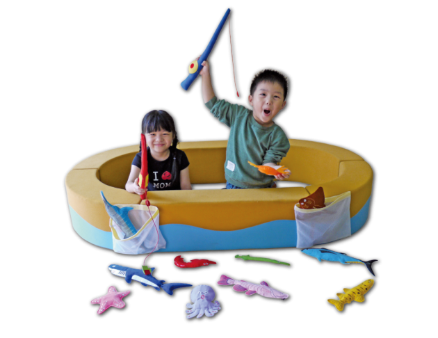 產品搭配了一紅一藍的布製釣魚竿讓孩子愛不釋手,釣竿設計有防繞頸安全繩可避免危險,讓孩子在安全的環境中遊戲。
