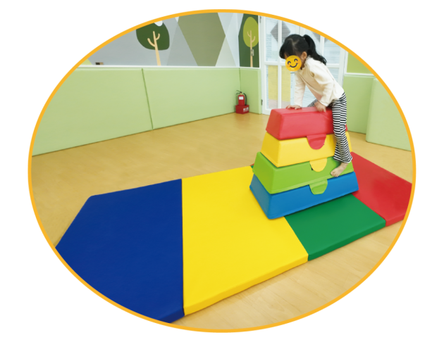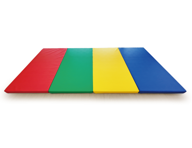 此款墊子的厚度5公分,可根據不同年齡的需求,折成二層(厚度10公分)、三層(厚度15公分)或四層(厚度20公分),可置於其他感統產品的下方,如:獨木橋、隧道及跳馬等,用於跳下時的緩衝。