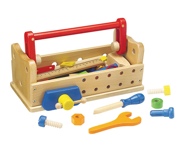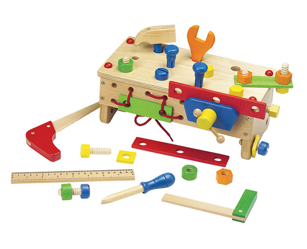 使用精選山毛欅木材質,觸感細緻滑順。內含完整工具及配件共32枚,讓孩子透過敲擊、搥打、拉鋸等動作訓練小肌肉、手眼協調發展。