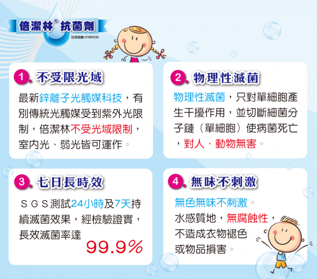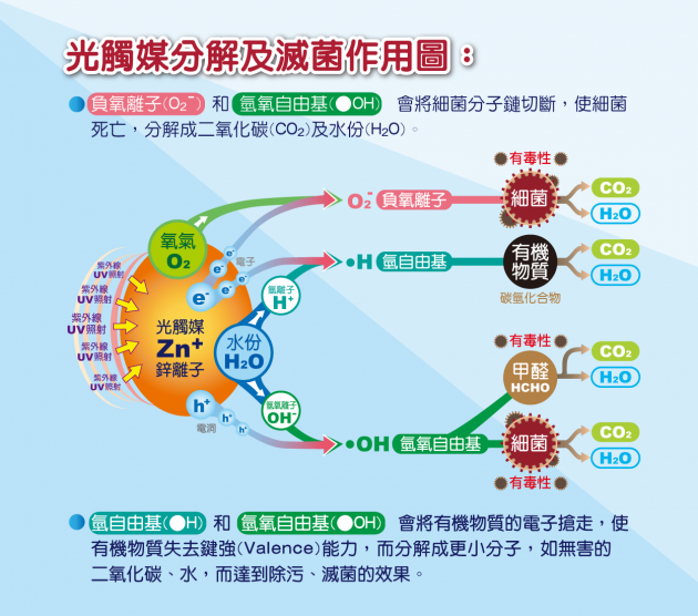 相較於瞬間菌需要反覆擦拭或噴灑,鋅離子光觸媒持續性的抗菌與安全性,將帶給使用者不一樣的新體驗!