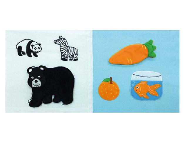 顏色布書可以讓幼兒認識三原色、三間色及黑白,每一頁有一個可摘拔的配件,通過幼兒親手操作,認識該顏色圖案,感受顏色與不同材質的觸覺,增加對色彩掌握。透過實際操作活動組件,讓幼兒親手拿著顏色組件尋找對應位置,建立對顏色的熟悉,並從中將顏色與圖案連結進行認知,可以加速幼兒的對顏色的理解。