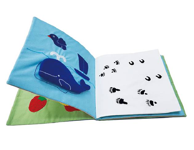 顏色布書是一本觸覺與視覺結合的布書,擁有撕不壞且可以清洗的特性,讓嬰兒在進行視覺刺激同時,還可以觸摸並拉拔組件,鍛煉小肌肉,促進神經的發展。