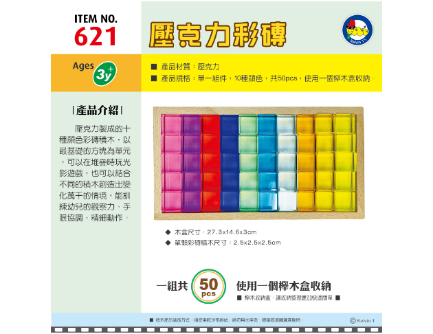 #621 壓克力彩磚 (50pcs+1個櫸木盒)