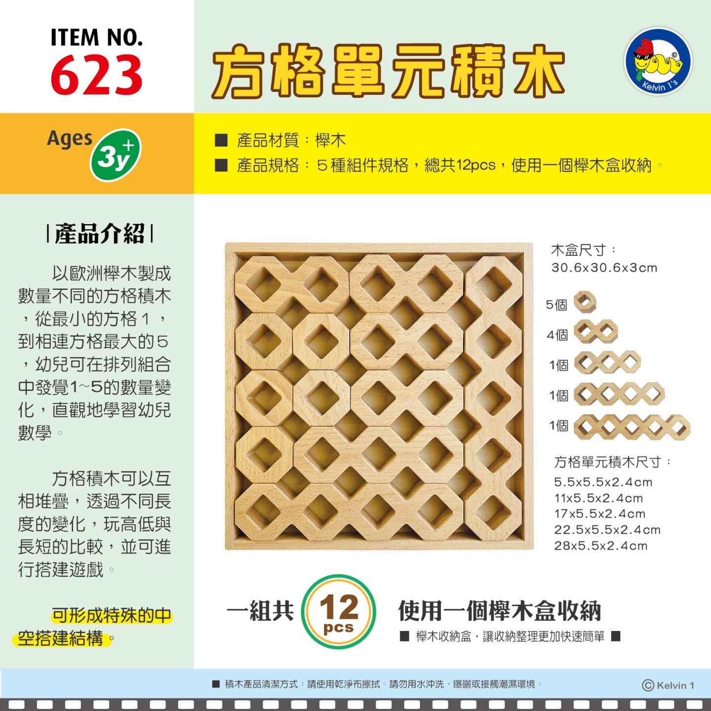 #623 方格單元積木(12pcs+1個櫸木盒)