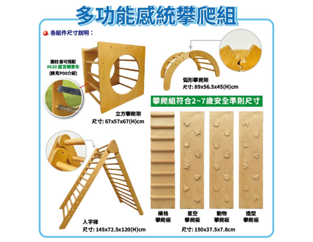 【預購】629 多功能感統攀爬組 標準組(歐洲櫸木 + F1樺木夾板/2歲~7歲)