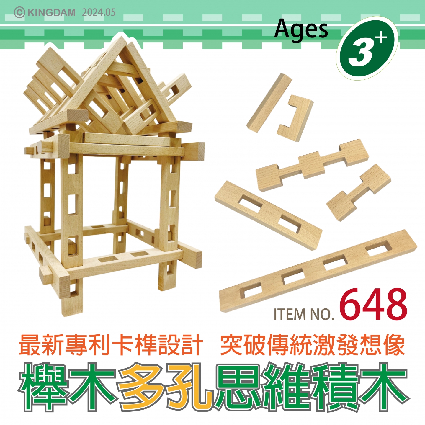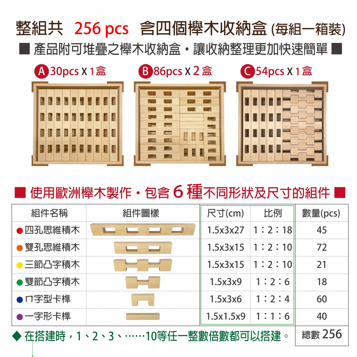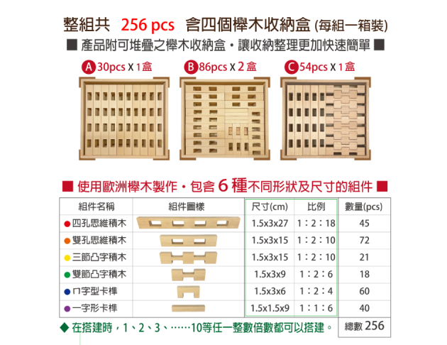 #648 櫸木多孔思維積木(256pcs/盒)