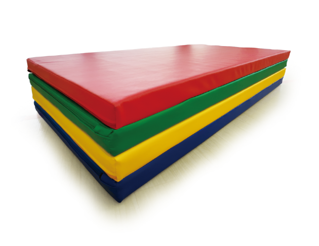 此款墊子的厚度5公分,可根據不同年齡的需求,折成二層(厚度10公分)、三層(厚度15公分)或四層(厚度20公分),可置於其他感統產品的下方,如:獨木橋、隧道及跳馬等,用於跳下時的緩衝。