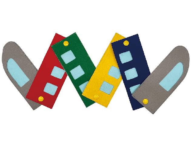 列車組根據按扣分為公扣及母扣的特性,設計了兩個不同方向的列車頭與四色車廂,讓幼兒練習拔與扣的生活技能。