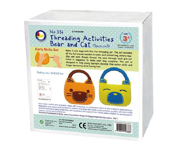 這款有趣的毛線組為穿線練習,有2個造型可愛的動物:小貓及小熊。