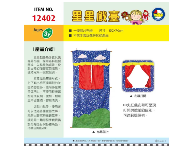 幼兒可以透過布製戲台進行角色扮演,或創造自己的故事,激發他們的想像力。 - 語言與溝通技巧