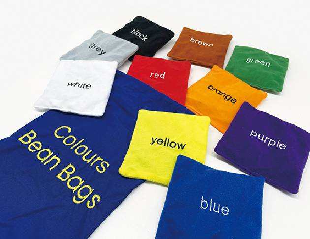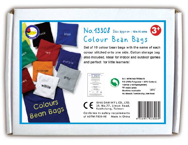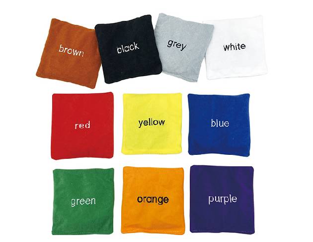 - 顏色砂包袋可以進行顏色認知、丟擲砂包與結合相關教具的教學遊戲。